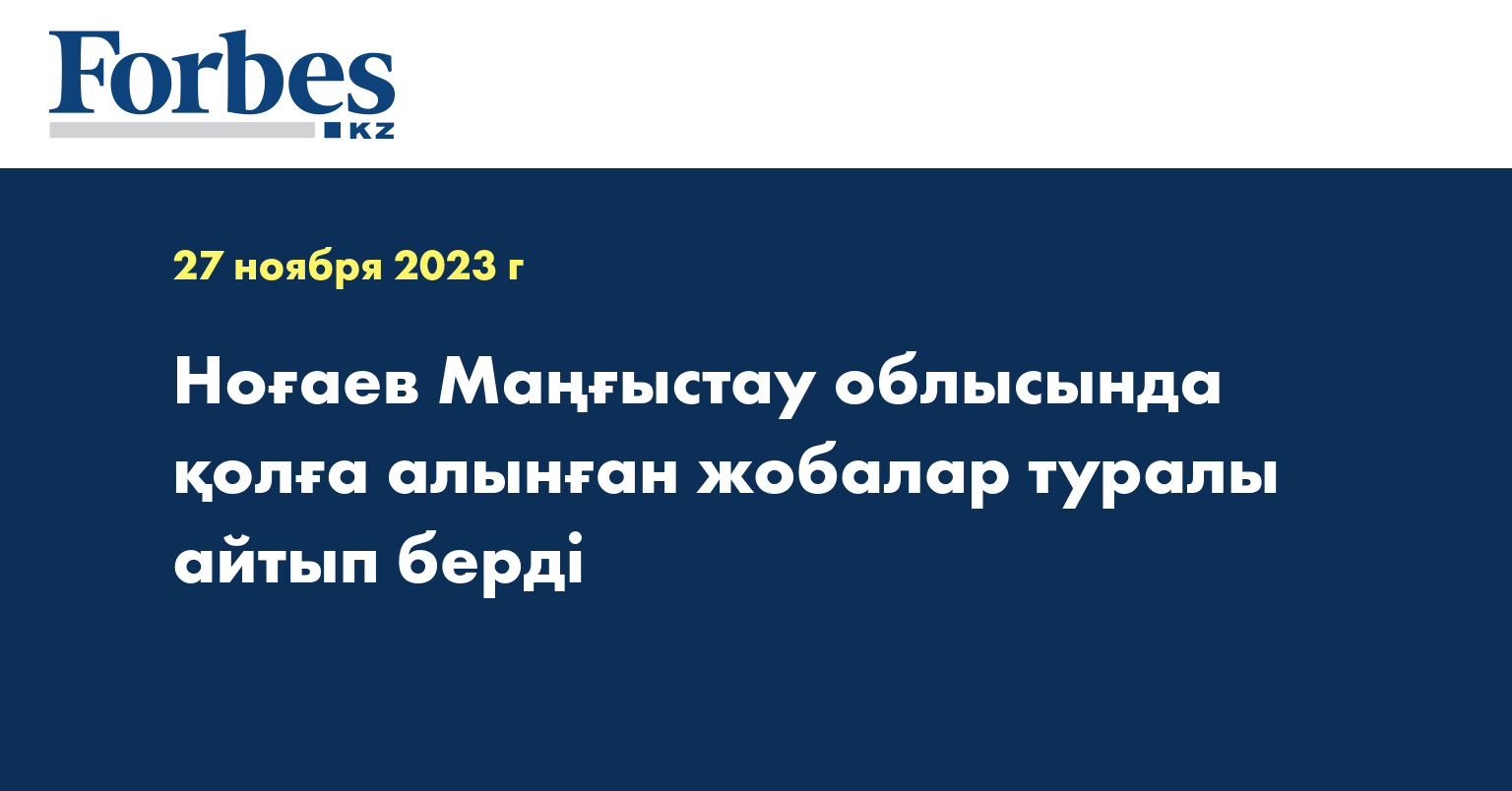 Аймақ әкімі ең алдымен келесі жобаларға тоқталды: «Жасыл сутегін өндіру», «Қаламқас, Хазар және Әуезов» кен орындарын игеру және де құбыр бұйымдарын дайындау, металл балқыту жобалары және де кеме жасау, мұнай-газ химиясы саласы жобалары. Ол жалпы құны 27 трлн теңге болатын 8 жоба 3700 жұмыс орнын ашуға мүмкіндік беретінін жеткізді.