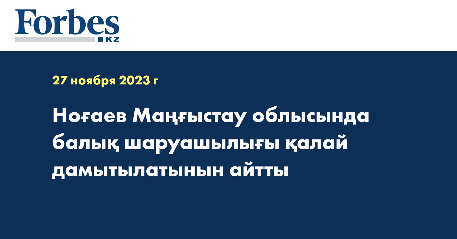 Маңғыстау облысында балық шаруашылығын дамытуға айрықша назар аударылуда. 2030 жылға дейін есептелген салалық бағдарламада өңірде жылына 100 мың тоннаға дейін балық өнімдерін шығару қарастырылған. Бұл жоспарға қол жеткізу мақсатында қолға алынып жатқан жұмыстар туралы аймақ басшысы Нұрлан Ноғаев Орталық коммуникациялар қызметінің алаңындағы есептік кездесуде баяндап берді.