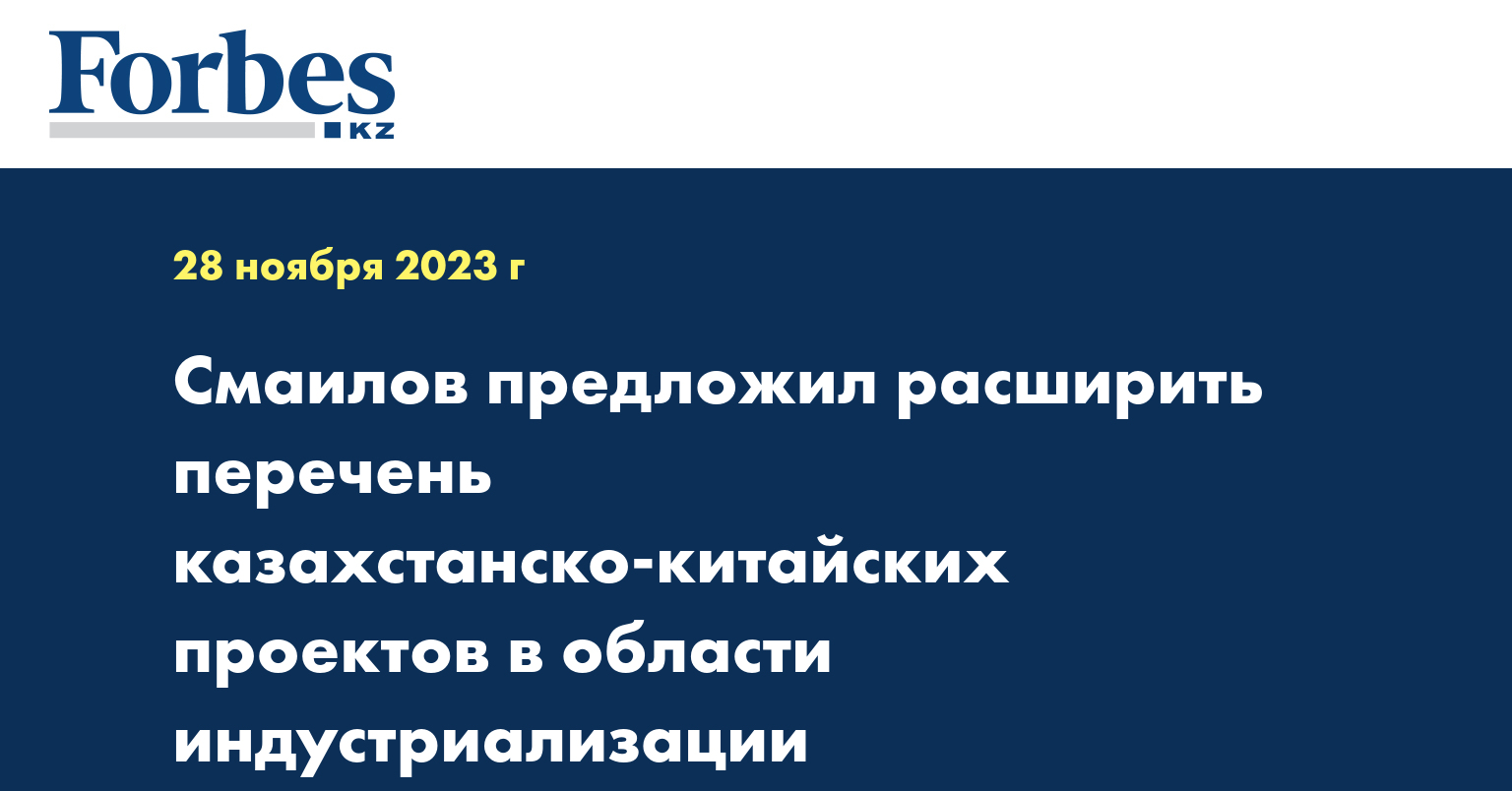 Алихан Смаилов также отметил важность дальнейшего увеличения количества авиарейсов между странами и реализации крупных проектов в энергетическом секторе. Это в том числе касается расширения пропускной способности нефтепровода «Казахстан-Китай», модернизации нефтеперерабатывающего завода в Шымкенте и т.д.