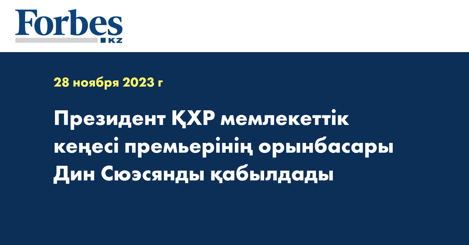 Өз кезегінде Дин Сюэсян Қасым-Жомарт Тоқаевқа ҚХР төрағасы Си Цзиньпиннің сәлемін жеткізіп, екі жақты ықпалдастықтың даму қарқынына көңілі толатынын айтты.