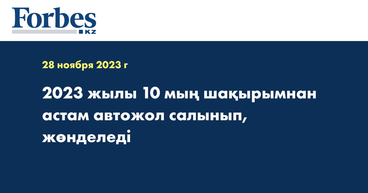 Көлік министрі Марат Қарабаев биыл құрылыс-монтаждау жұмыстарымен 10,7 мың км автомобиль жолдары қамтылғанын, оның ішінде 6,5 мың км республикалық маңызы бар трассалар, 4,2 мың км жергілікті жолдар екенін мәлімдеді. Жүргізілген жұмыстардың қорытындысы бойынша республикалық деңгейде нормативтік жай-күйдегі жолдардың үлесі 92%-ға, жергілікті деңгейде 87%-ға жетеді.