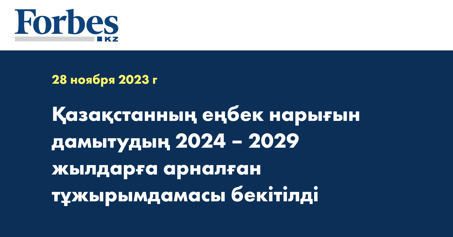 ҚР Үкіметі Мемлекет басшысының 2023 жылғы 1 қыркүйектегі Қазақстан халқына Жолдауында айтылған тапсырмасын орындау үшін ҚР Еңбек және халықты әлеуметтік қорғау министрлігі әзірлеген Еңбек нарығын дамытудың 2024-2029 жылдарға арналған тұжырымдамасын бекітті. Онда ұсынылған шараларды іске асыру сапалы жұмыс орындарының санын 3,6 млн-ға дейін ұлғайтуға және жұмыспен қамту құрылымын жақсартуға септігін тигізеді, деп хабарлайды ведомствоның баспасөз қызметі.