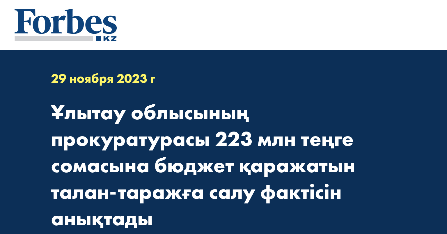 Аталған факт бойынша облыс прокуратурасы Қылмыстық кодекстің 189-бабы (Сенiп тапсырылған бөтен мүлiктi иемденiп алу немесе талан-таражға салу) бойынша сотқа дейінгі іс жүргізуді бастап, оны тергеп-тексеру Ұлытау облысы бойынша Сыбайлас жемқорлыққа қарсы іс-қимыл агенттігінің департаментіне тапсырылды.