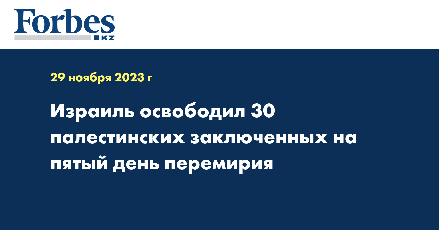 Управление тюрем Израиля подтвердило, что 30 палестинцев, в том числе 15 женщин и 15 несовершеннолетних, были освобождены из израильских тюрем в ходе пятого обмена в соответствии с соглашением о прекращении огня между Израилем и ХАМАС.