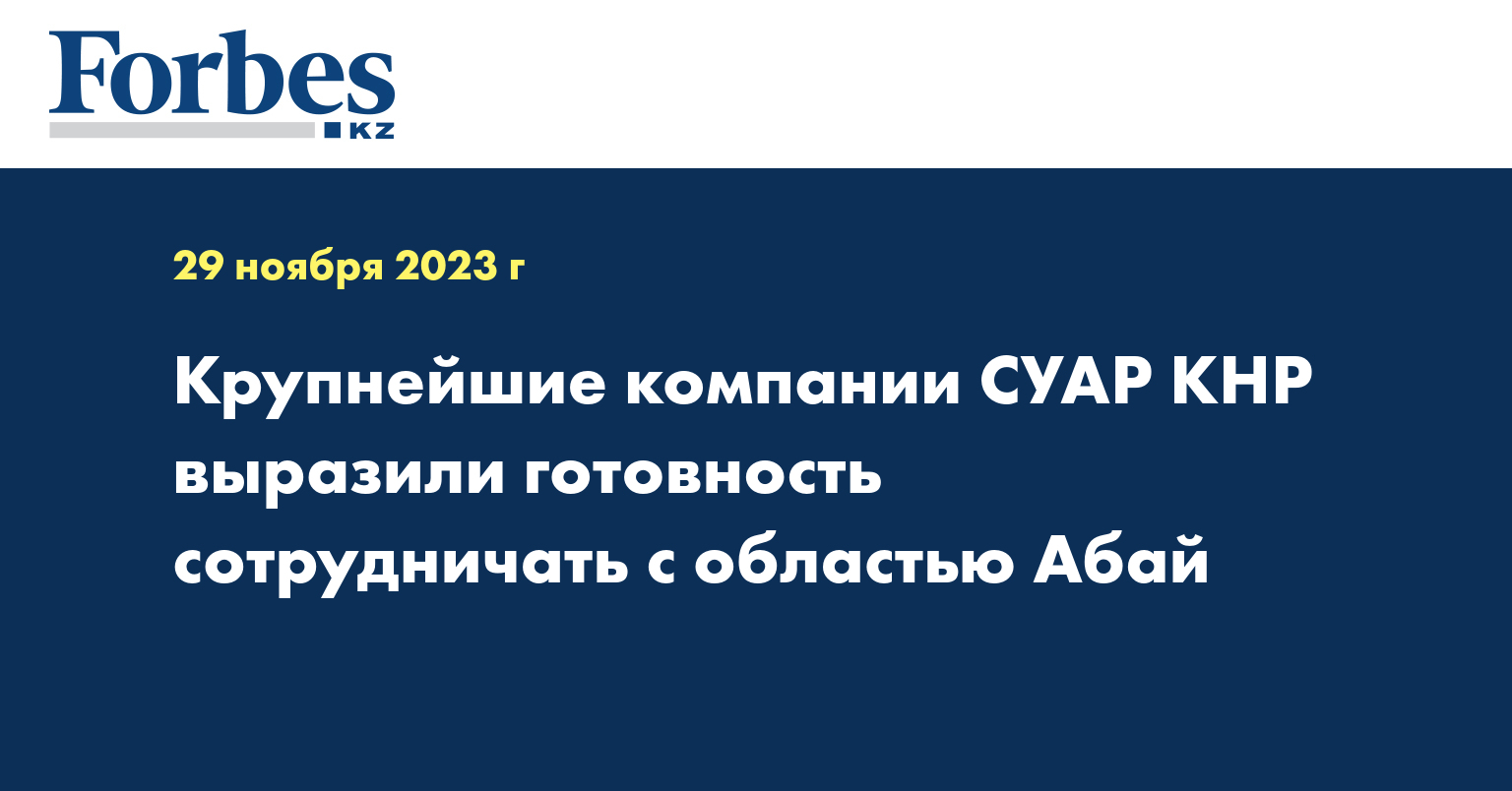Крупнейшие компании СУАР КНР выразили готовность сотрудничать с областью Абай