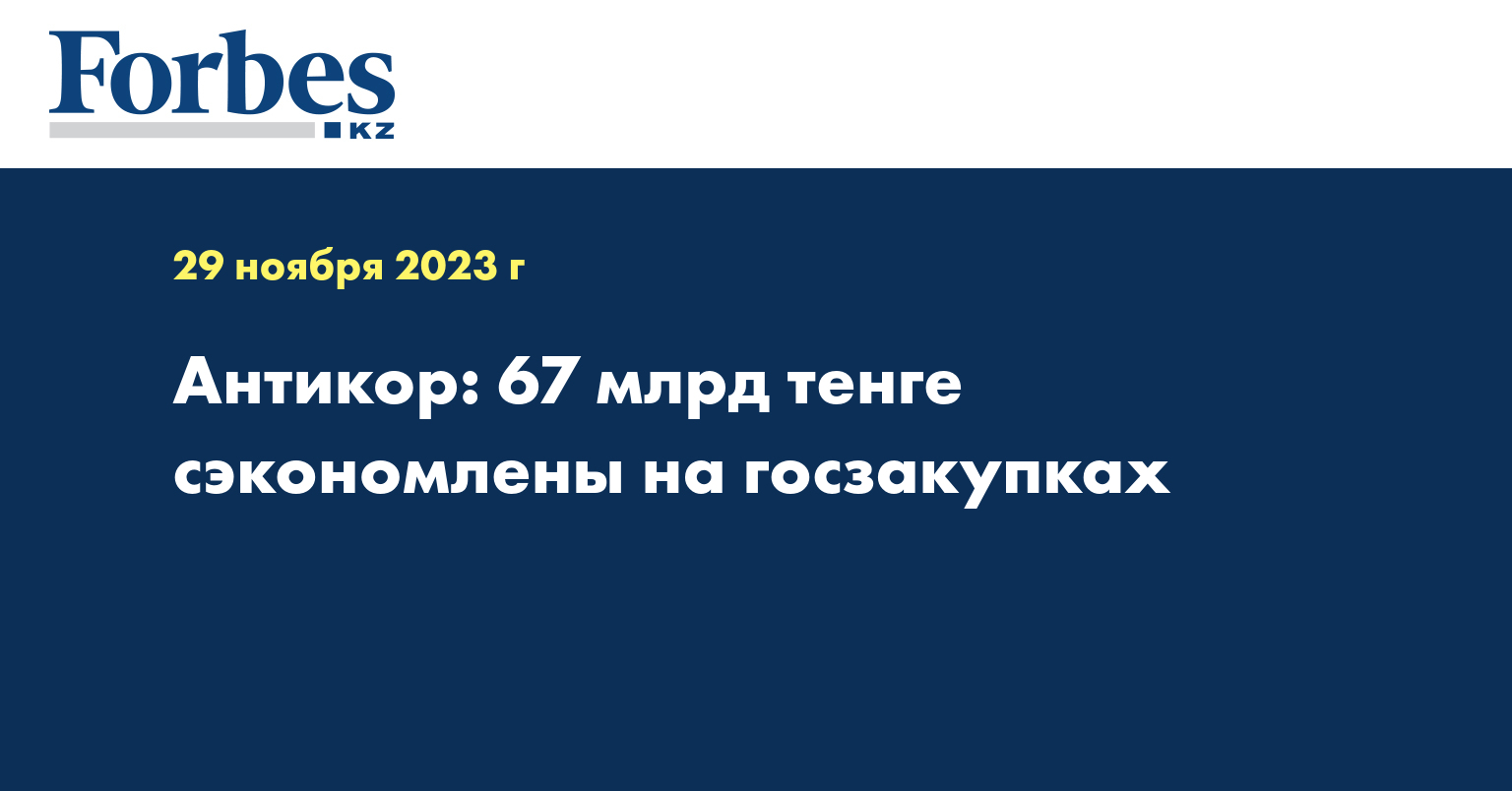 Антикоррупционной службой за последние 2 года в сфере госзакупок предотвращено неэффективное расходование бюджетных средств на сумму более 67 млрд тенге (2022 год - 29 млрд тенге, за 10 месяцев 2023 года - 38,4 млрд тенге).