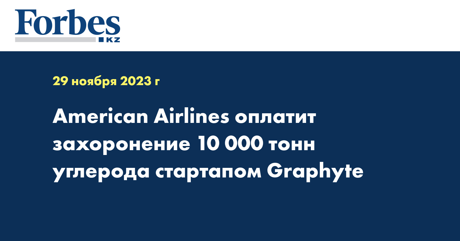 Авиакомпания American Airlines подписала соглашение по улавливанию из атмосферы и захоронению под землей до 2025 года 10 000 т углекислого газа (СО2) со стартапом Graphyte. American Airlines станет первым клиентом Graphyte, сообщила пресс-служба стартапа, который поддерживается фондом Breakthrough Energy Ventures миллиардера Билла Гейтса