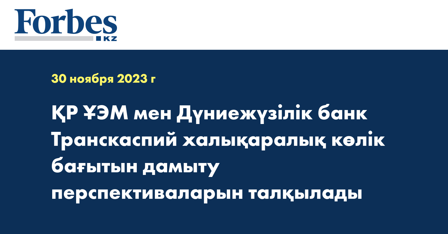 Дүниежүзілік Банктің консультанттар тобы «Орта сауда-көлік дәлізі: 2030 жылға қарай жүк тасымалы көлемін үш есе ұлғайту және жол жүру уақытын екі есе қысқарту үшін қажетті стратегиялық шешімдер мен инвестициялар» зерттеуінің негізгі қорытындыларын ұсынды.