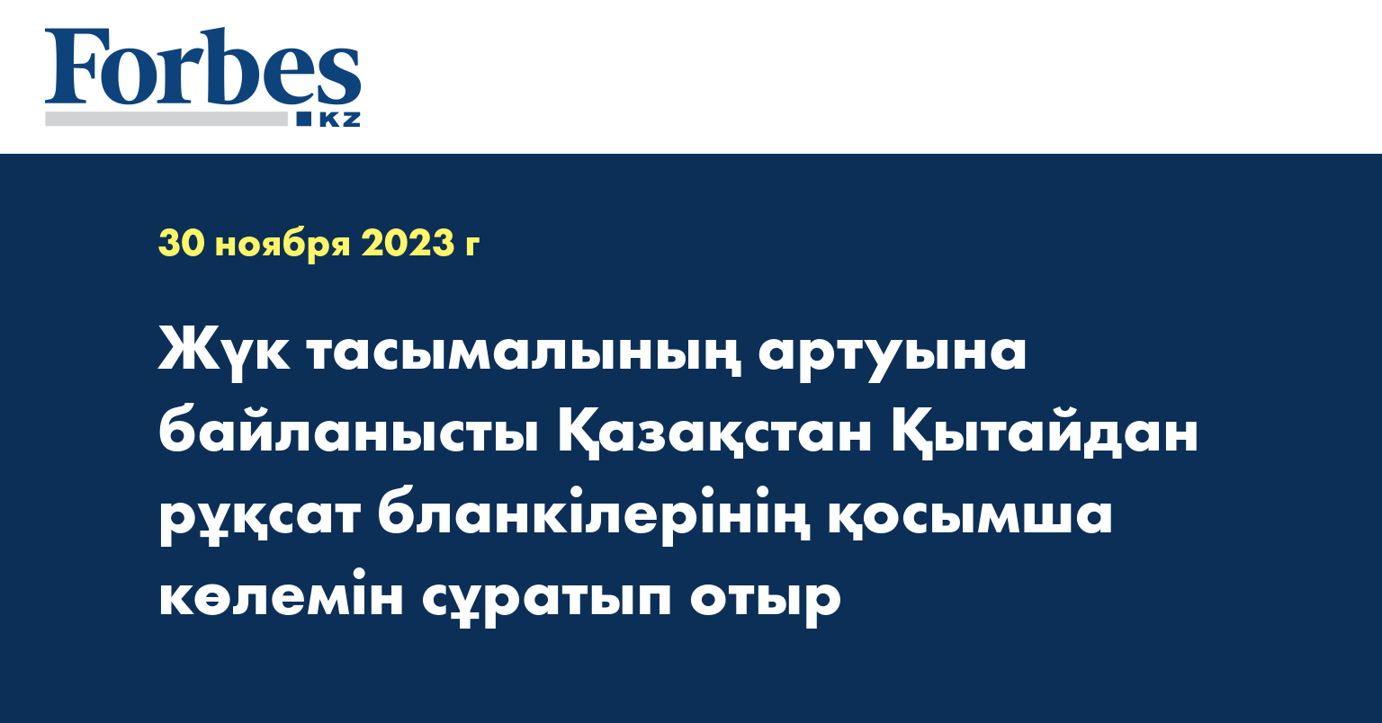 Автотасымалдау туралы үкіметаралық келісімге сәйкес жыл басында Қазақстан Қытай тарапынан екі ел арасында жүктерді тасымалдауды жүзеге асыруға мүмкіндік беретін «С» типті 50 мың рұқсат бланкісін алған болатын.