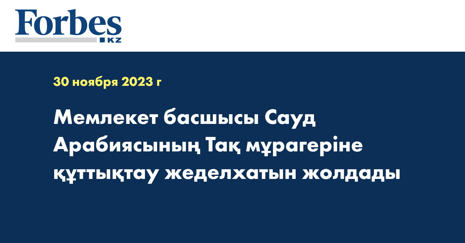 Мемлекет басшысы Қасым-Жомарт Тоқаев Сауд Арабиясының Тақ мұрагері, Премьер-министрі, Ханзада Мұхаммед бен Салман Әл Саудтың аса жауапты қызметіне толағай табыс, ал бауырлас сауд халқына құт-береке тіледі.
