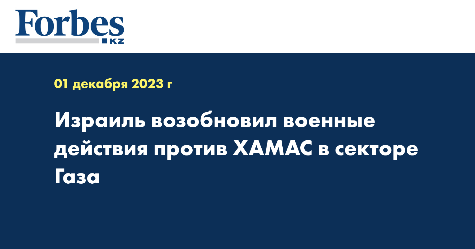 ХАМАС нарушил условия перемирия и открыл огонь в направлении Израиля, из-за этого Армия обороны Израиля (ЦАХАЛ) возобновляет военные действия в секторе Газа. Об этом говорится в сообщении ЦАХАЛ, опубликованном в Telegram-канале, передает Forbes.ru.