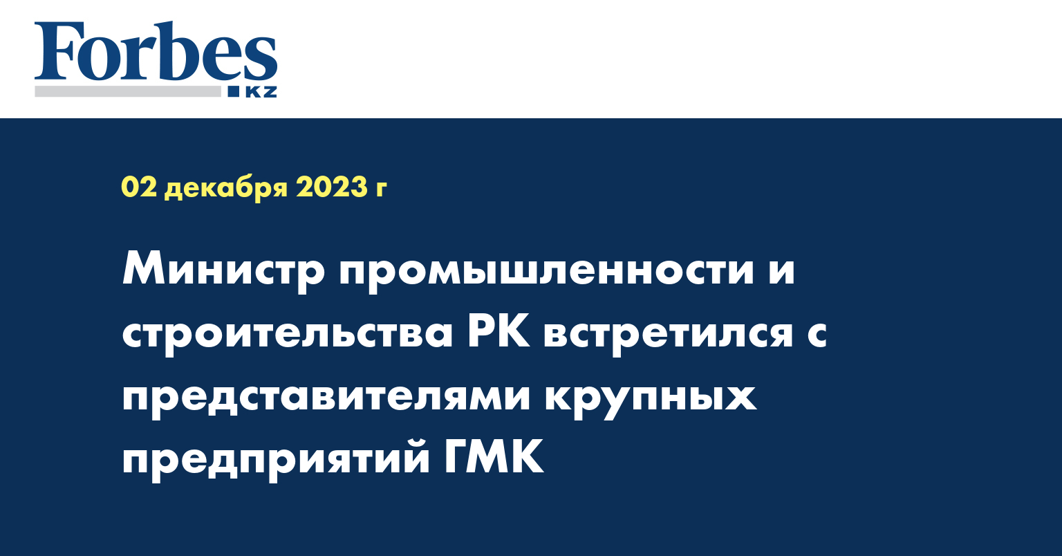 Министр промышленности и строительства РК Канат Шарлапаев провел встречу с предприятиями ГМК, Национальной палатой и представителями отечественных товаропроизводителей.
