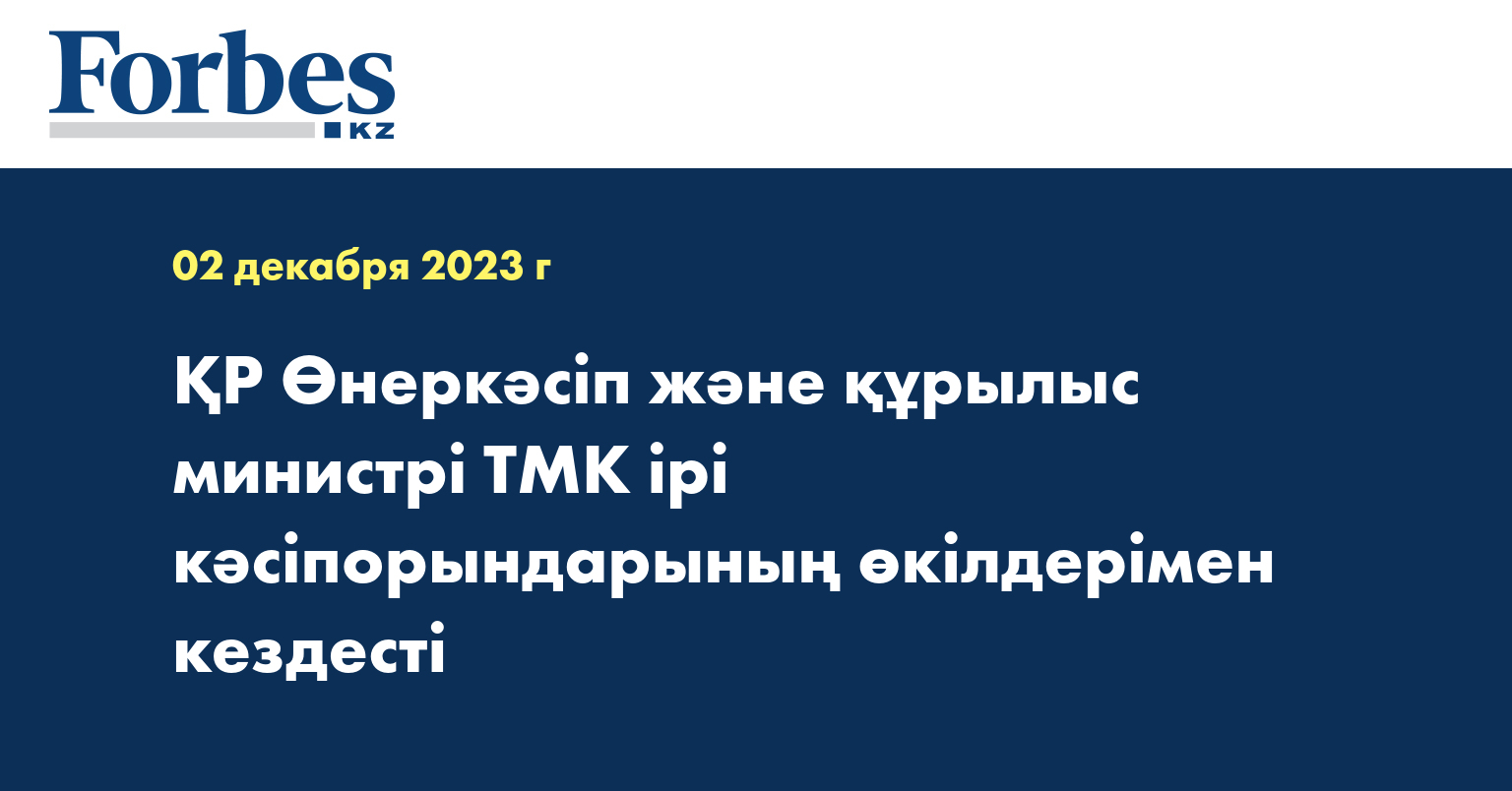 ҚР Өнеркәсіп және құрылыс министрі Қанат Шарлапаев ТМК кәсіпорындарымен, Ұлттық палатамен және отандық тауар өндірушілердің өкілдерімен кездесу өткізді.