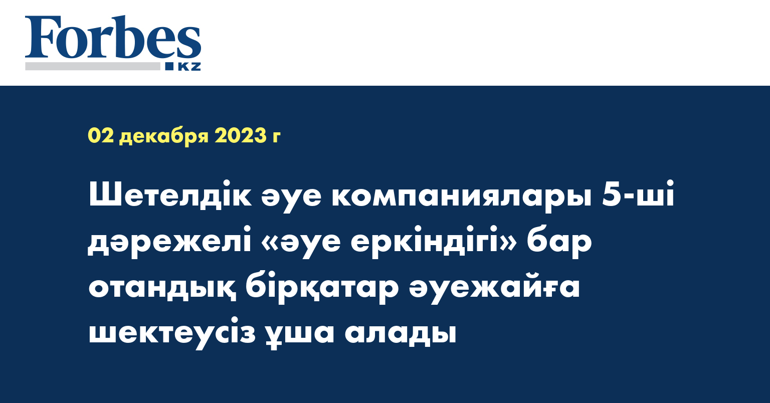 Осылайша, шетелдік әуе компаниялары Қазақстанның бірқатар әуежайына әуе кемелерінің типтері мен жиілігіне қарамастан, оның ішінде бағыттар бойынша шектеусіз 5-ші дәрежелі «әуе еркіндігімен» ұшуларды орындау мүмкіндігіне ие болды.