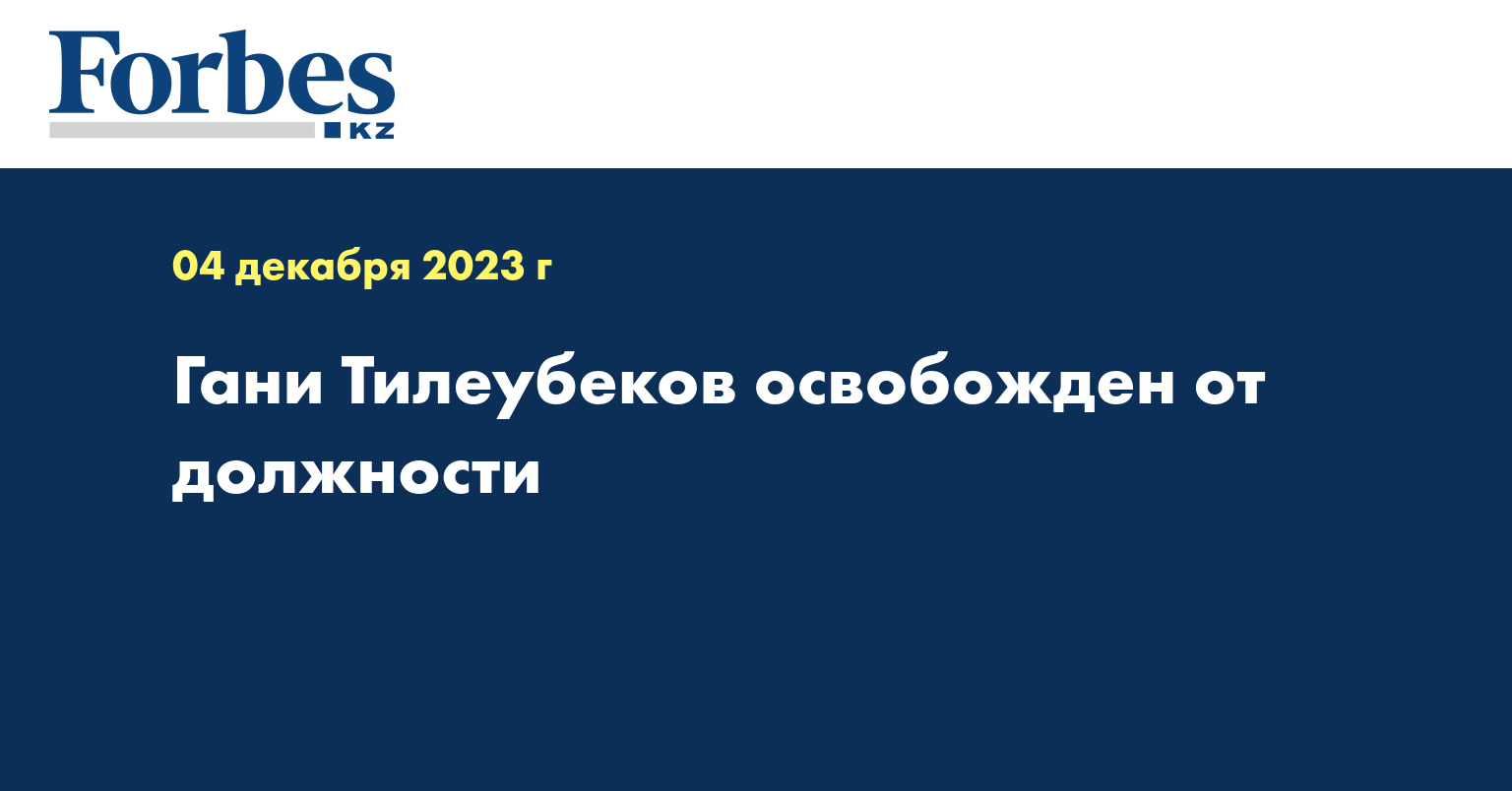 Распоряжением главы государства Тилеубеков Гани Утенович освобожден от должности заведующего отделом информатизации и защиты информационных ресурсов администрации президента Республики Казахстан.