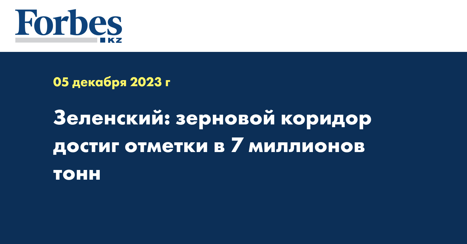 Президент Украины Владимир Зеленский приветствовал это достижение, заявив на сайте X, что «зерновой коридор продолжает работать и достиг отметки в семь миллионов тонн».