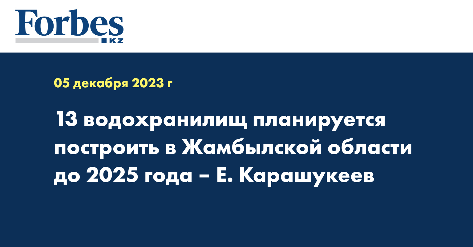 Объем новых водохранилищ составит 46,2 млн куб.м воды. В настоящее время уже строятся 3 объемом 1,4 млн куб.м. Также продолжаются ремонтные работы гидрологического поста в селе Жасоркен Жамбылского района и 2 действующих водохранилищ (650 млн куб.м.).