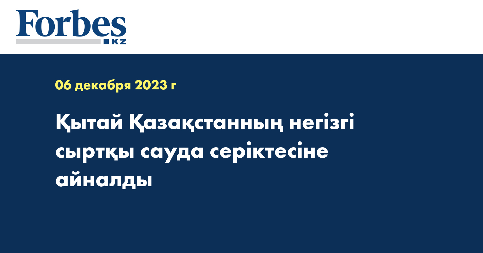 Қытай Қазақстанның негізгі сыртқы сауда серіктесіне айналды. Соңғы бірнеше жылда Қытайдың Қазақстанның тауар айналымындағы үлесі алғаш рет 21,3%-ға жетті. Бұл 2017 жылдан бергі ең жоғары көрсеткіш. Биыл қаңтар–қыркүйекте елдер 21,7 млрд АҚШ долларына тауар алмасты, деп хабарлайды energyprom.kz.