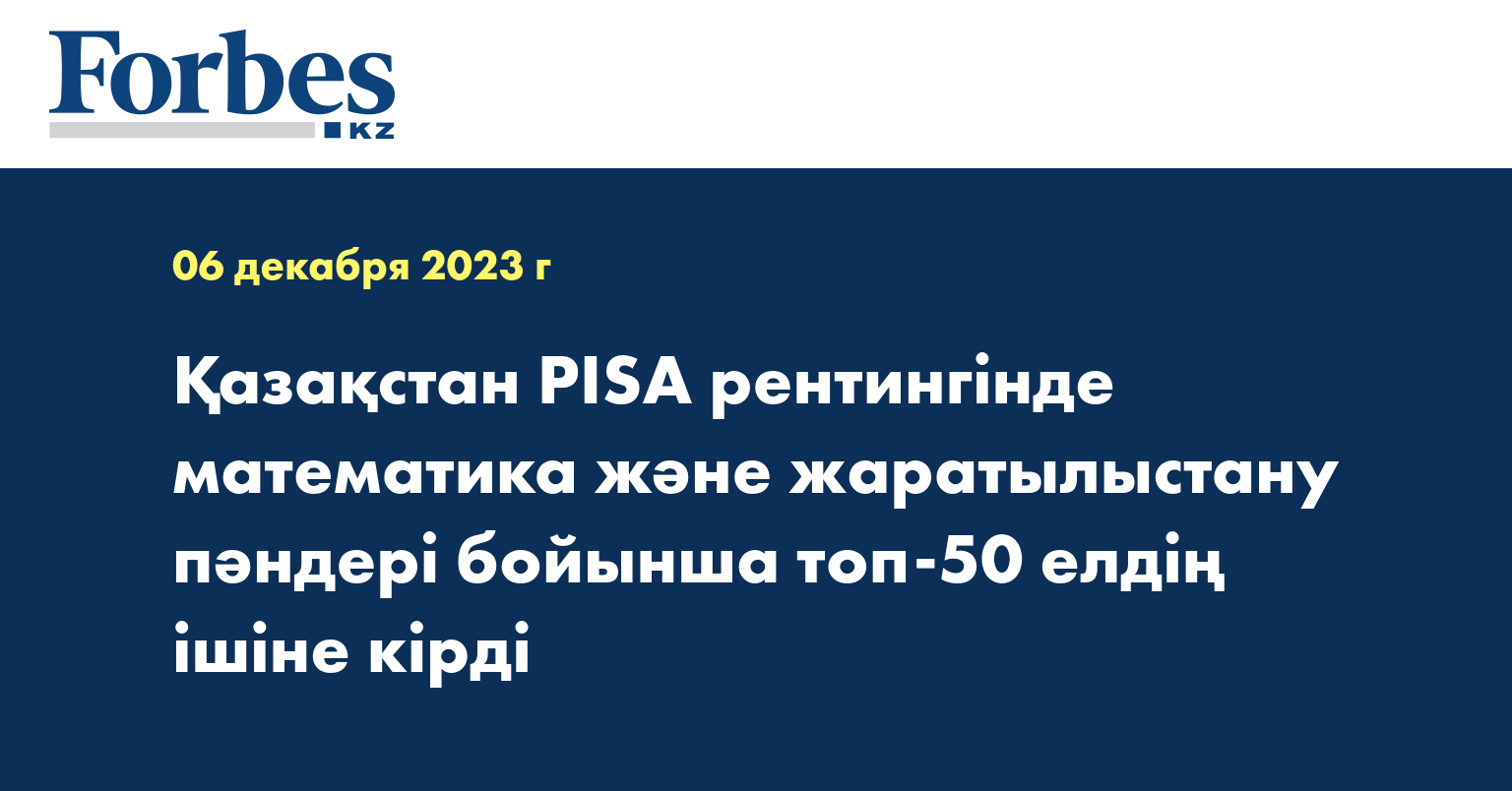 Экономикалық ынтымақтастық және даму ұйымы (ЭЫДҰ) Білім алушыларды бағалау жөніндегі PISA-2022 халықаралық бағдарламасының нәтижелерін жариялады. Онда 81 мемлекеттен қатысқан 15 жастағы білім алушылардың математикалық, оқу және жаратылыстану сауаттылығының деңгейі бағаланды. Бұл туралы ҚР Оқу-ағарту министрі хабарлады.