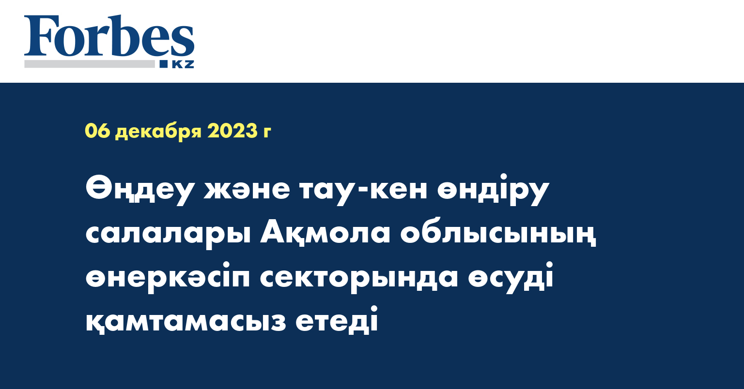 Ақмола облысының әкімі Марат Ахметжановтың айтуынша, өнеркәсіп саласындағы өндіріс көлемі 1,4 трлн теңгеге жетіп, өткен жылмен салыстырғанда 13% артты. Бұл ретте өңдеуші саладағы өндіріс көлемі 11,3%-ға, тау-кен өндіру саласында - 21%-ға ұлғайды.