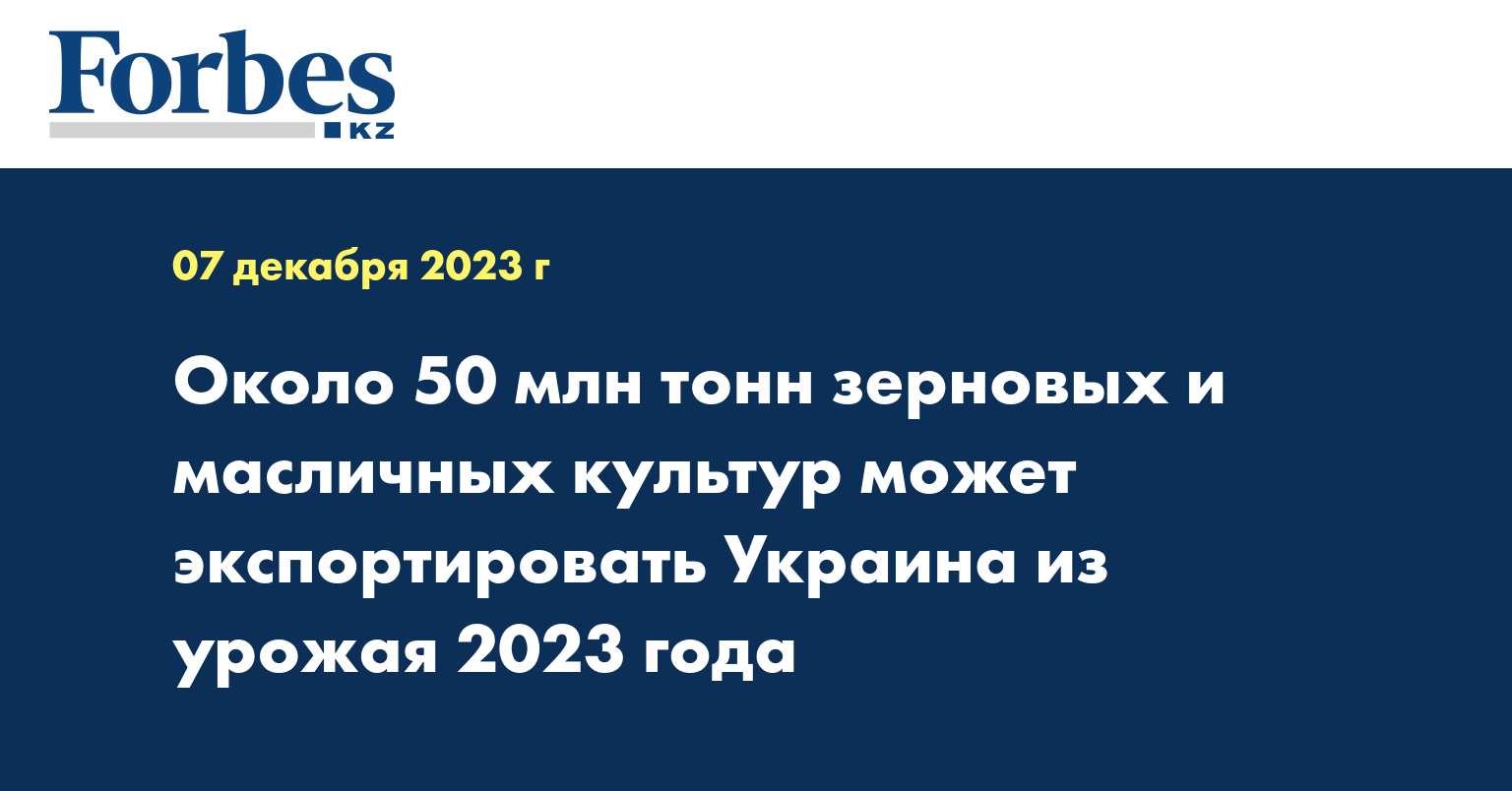 Украина может экспортировать около 50 млн тонн зерновых и масличных культур урожая 2023 года, общий объем которого, предположительно, составит 81 млн тонн. Об этом, как передает Интерфакс-Украина, заявил в среду президент Украинской зерновой ассоциации /УЗА/ Николай Горбачев, передает Синьхуа.