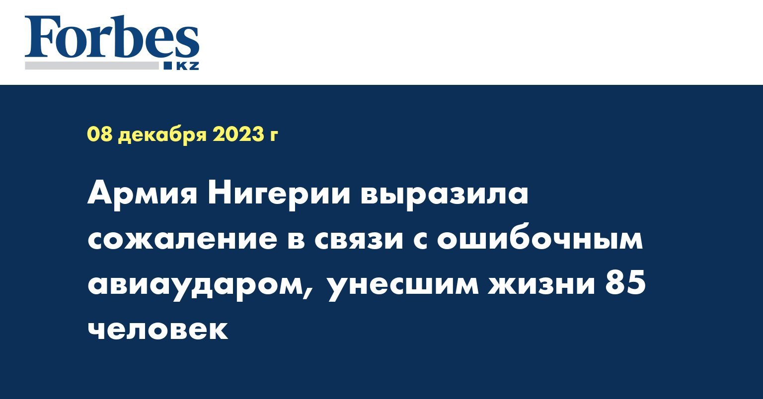 Армия Нигерии в четверг выразила сожаление в связи с ошибочным авиаударом в начале недели в штате Кадуна на севере страны, унесшим жизни по меньшей мере 85 человек, передает Синьхуа.