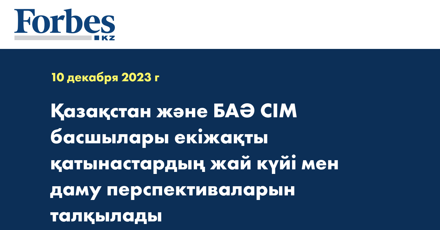 Қазақстан СІМ басшысы әмірлік әріптесіне ҚР Президентінің БАӘ Президенті шейх Мұхаммед бен Заид Әл Нахаянның атына 2024 жылы өтетін Астана халықаралық форумына шақыру хатын табыстап, оның бұл іс-шараға қатысуын елімізге ресми сапарымен ұштастыру мүмкіндігін атап өтті.