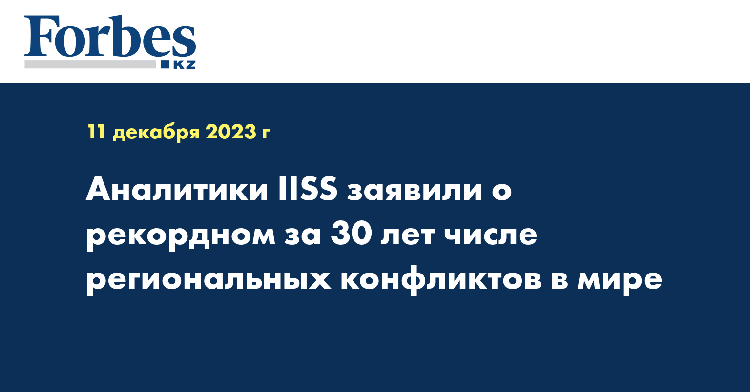 В 2023 году в мире действовало 183 региональных вооруженных конфликта, это рекордный показатель за 30 лет. Об этом сообщает Bloomberg со ссылкой на ежегодный обзор конфликтов, подготовленный и опубликованный The International Institute for Strategic Studie — Международным институтом стратегических исследований (IISS).