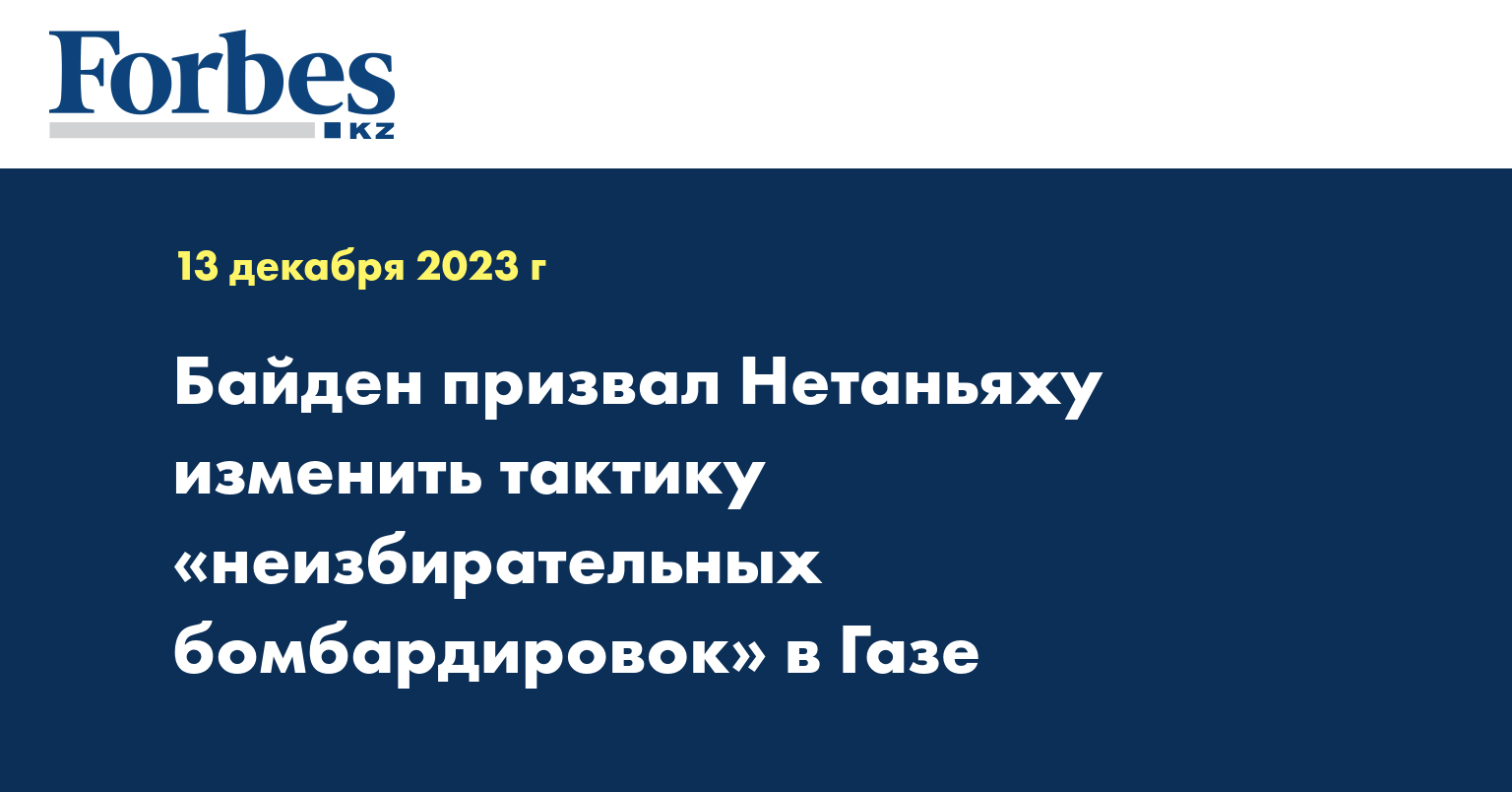 Президент США Джо Байден призвал премьер-министра Израиля Биньямина Нетаньяху изменить тактику в секторе Газа, предупредив, что «неизбирательные бомбардировки» могут оставить Тель-Авив в изоляции, пишет Financial Times, передает Forbes.ru.
