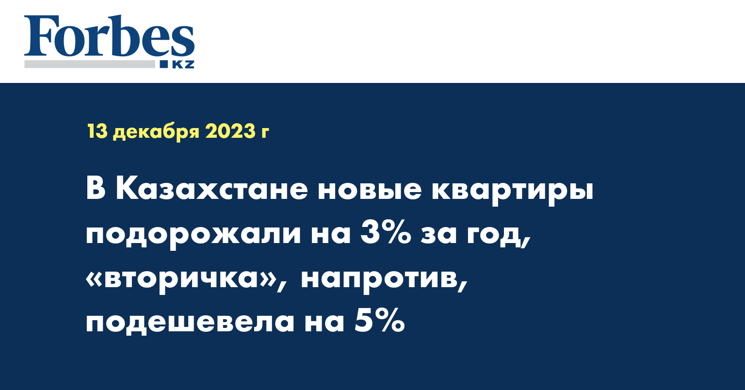 Среди крупных городов страны цены на новое жильё заметнее всего выросли в Павлодаре: на 14,8% за год. Заметное удорожание также было зафиксировано в Петропавловске (плюс 10,6%) и Актау (плюс 10%). В Караганде цены остались на уровне прошлого года. В Шымкенте и в Кокшетау цены снизились: на 4,3% и на 6,3% соответственно.