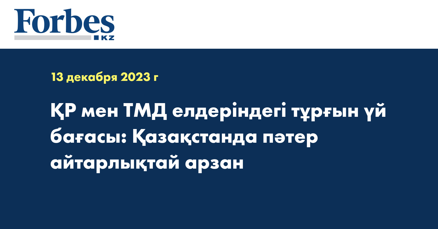 Биыл 11 желтоқсанындағы жағдай бойынша, Numbeo мәліметінше, Қазақстандағы қала орталығындағы пәтердің құны шаршы метріне 1,4 мың АҚШ доллары. Бұл рейтингке қатысушы ТМД елдері арасындағы ең төменгі көрсеткіштердің бірі.