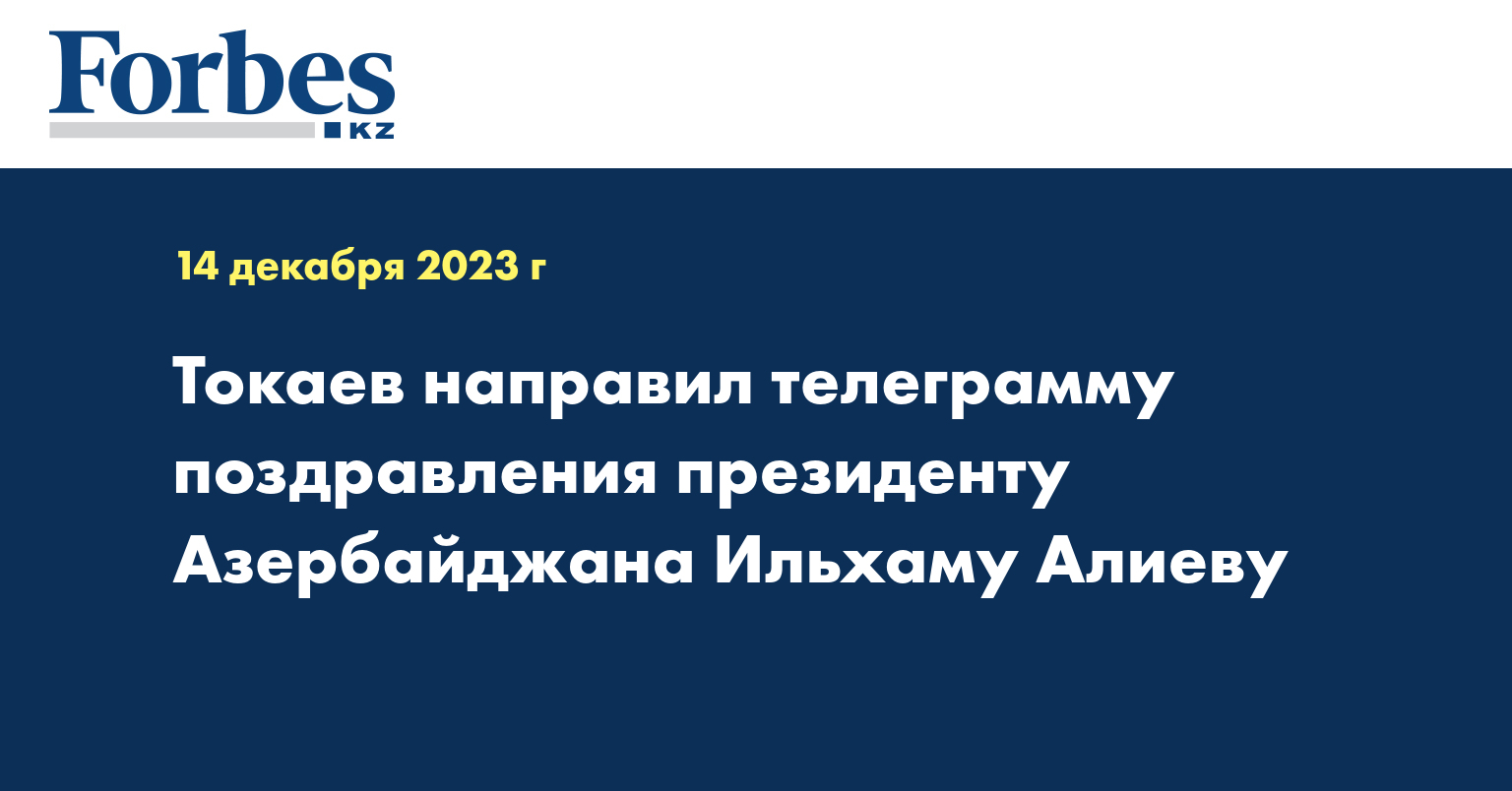 Президент Касым-Жомарт Токаев поздравил президента Ильхама Алиева с впечатляющим успехом – избранием Азербайджана страной проведения 29-й Конференции сторон Рамочной конвенции ООН по изменению климата в 2024 году.