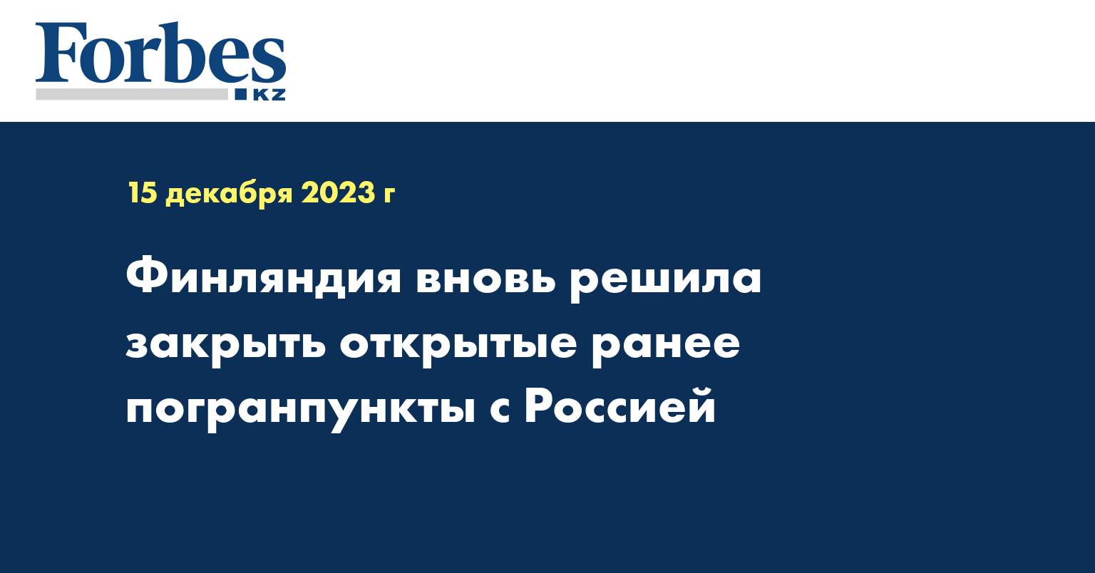 В ночь на 14 декабря Финляндия на месяц открыла два пункта пропуска на границе с Россией – Ваалимаа и Ниирала, с российской стороны они называются Торфяновка и Вяртсиля. Один расположен на границе Финляндии с Ленинградской областью, другой – с Карелией. В последние недели все пункты пропуска на границе с Россией были закрыты из-за наплыва граждан третьих стран, просивших убежища в Финляндии. Шесть пунктов по-прежнему не работают.
