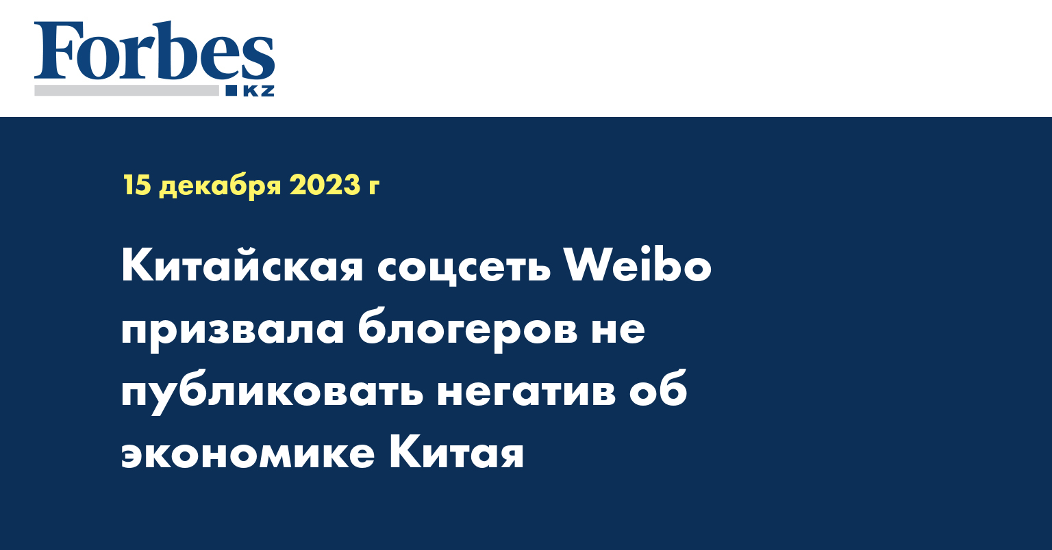 Китайский сервис микроблогов Weibo просит некоторых пользователей не публиковать негативный контент об экономике страны, пишет Bloomberg со ссылкой на неназванных блогеров, передает Forbes.ru.