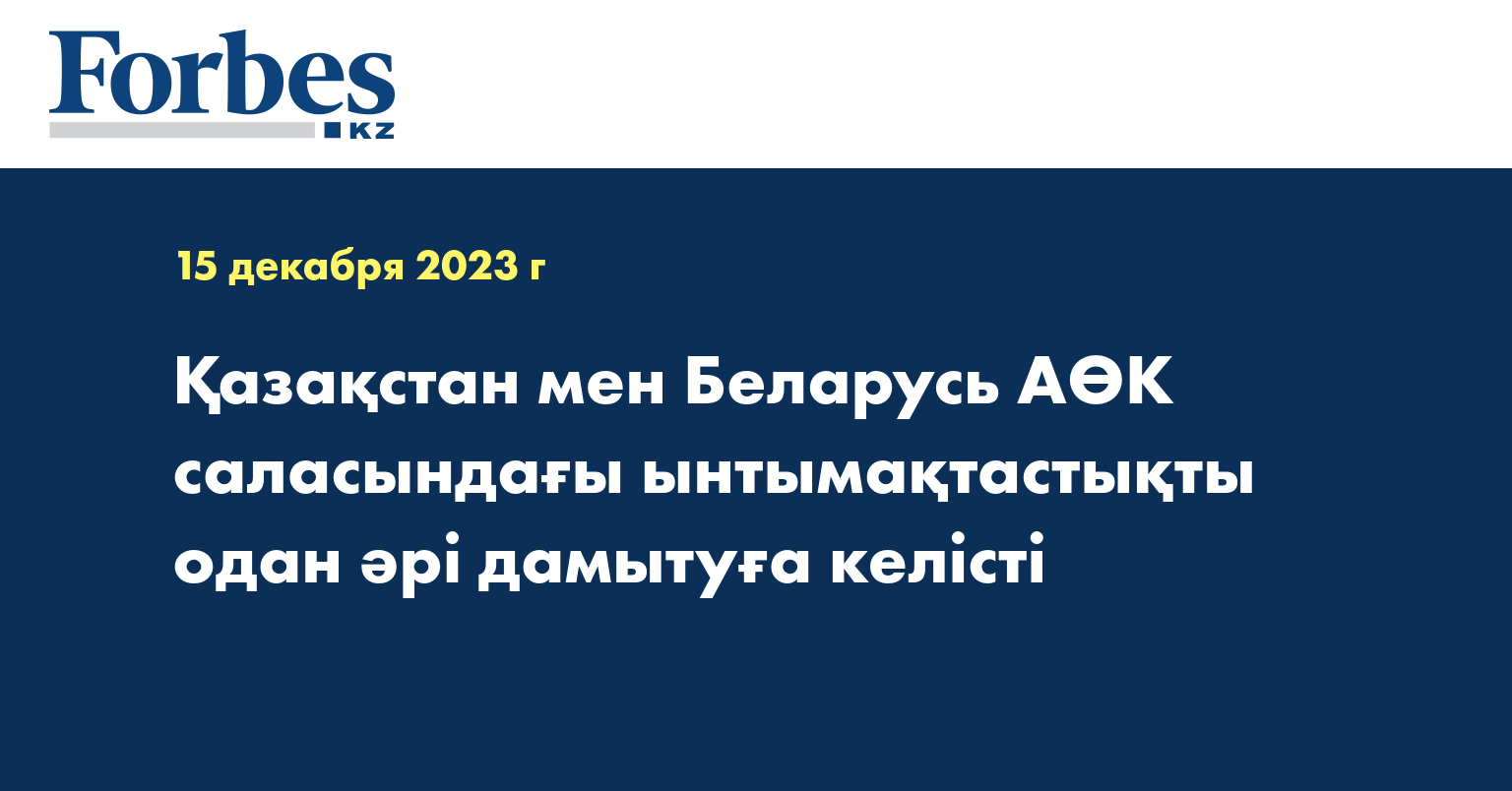 Әбілхайыр Тамабек өз сөзінде АӨК саласындағы өзара іс-қимыл екі ел ынтымақтастығының басым бағыттарының бірі болып табылатынын атап өтті. 2023 жылдың 9 айында Ауыл шаруашылығы өнімдерінің тауар айналымы 173,9 млн долларды құрады, бірақ Беларусь тауарларының импорты қазақстандық тауарлардың экспортынан әлдеқайда асып түсті.