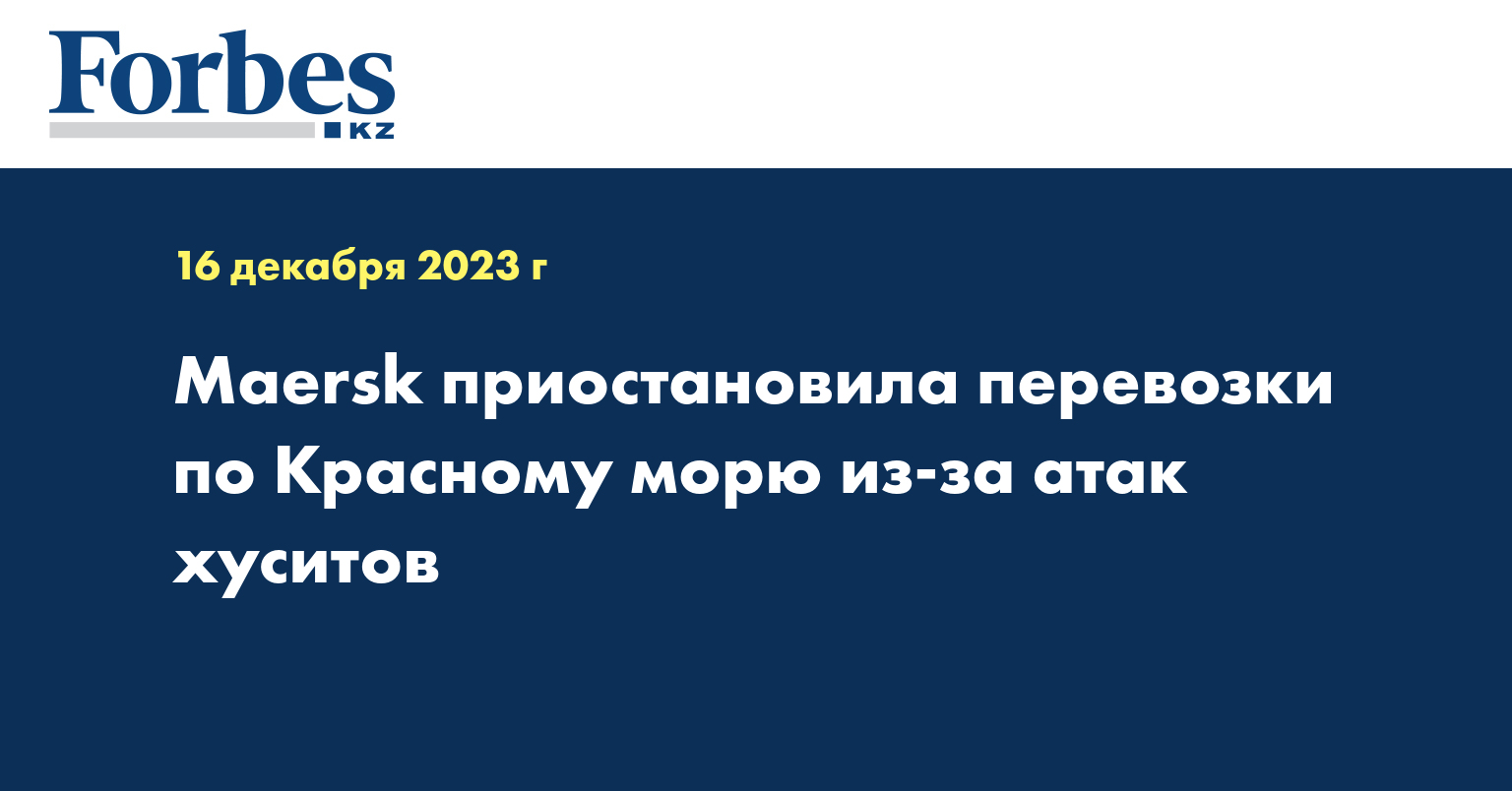 Датская Moller-Maersk Group, второй по величине контейнерный перевозчик в мире, временно запретила своим судам использовать маршрут через Красное море из-за участившихся атак йеменских хуситов, сообщает Forbes.ru со ссылкой на Bloomberg.