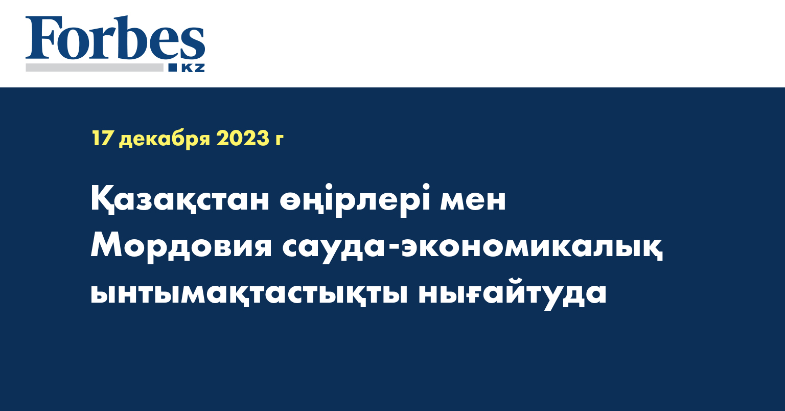 Сонымен қатар, А. Здунов Қазақстан мен Мордовия арасында ұзақ мерзімді сауда-инвестициялық байланыстар жұмыс істейтінін және кәсіпорындардың бизнес-миссияларының белсенді алмасуы ұйымдастырылғанын атап өтті. Қазіргі уақытта Қазақстан Мордовияның негізгі сыртқы сауда серіктесі болып табылады және елге экспортталатын республикалық кәсіпорындардың өнім көлемі шамамен 30% құрайды. Экспорттық позициялар кеңейтілуде: теміржол вагондары, талшықты-оптикалық кабель, ет, сүт өнімдері және жартылай фабрикаттар, талшықты-цемент және хризотилцемент бұйымдары.