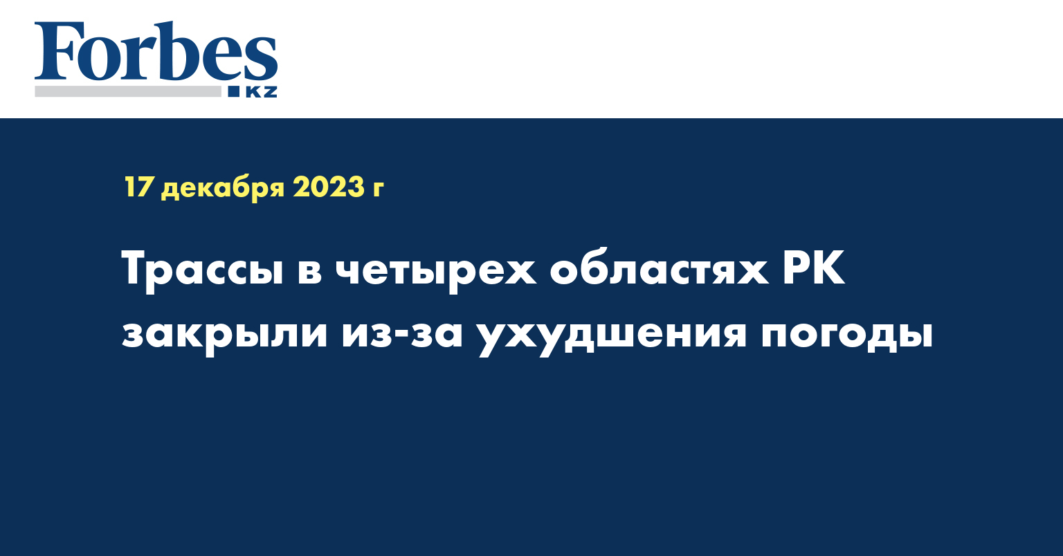 В связи с ухудшением погодных условий (понижение температуры воздуха, обильное выпадение осадков, метель, сильный ветер, ограничение видимости) введено ограничение движения транспорта, которое действует на пяти участках автодорог республиканского значения в четырех областях, передает QazAvtoJol.