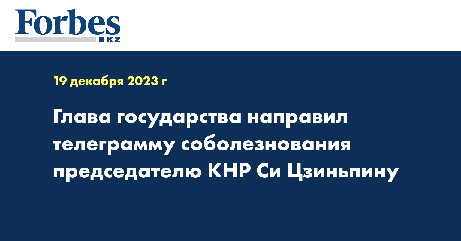 Президент Касым-Жомарт Токаев выразил соболезнования председателю Китайской Народной Республики Си Цзиньпину в связи с многочисленными человеческими жертвами в результате землетрясения в северо-западной части страны.