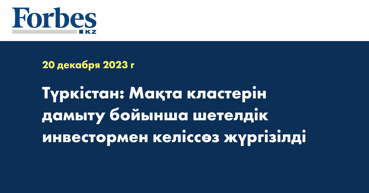 «Xinjiang Lihua (Group) Co., Ltd» компаниясының бас директоры Чжан Цихай Түркістан облысында мақта өңдеу зауытын ашуға ниетті екенін жеткізді.