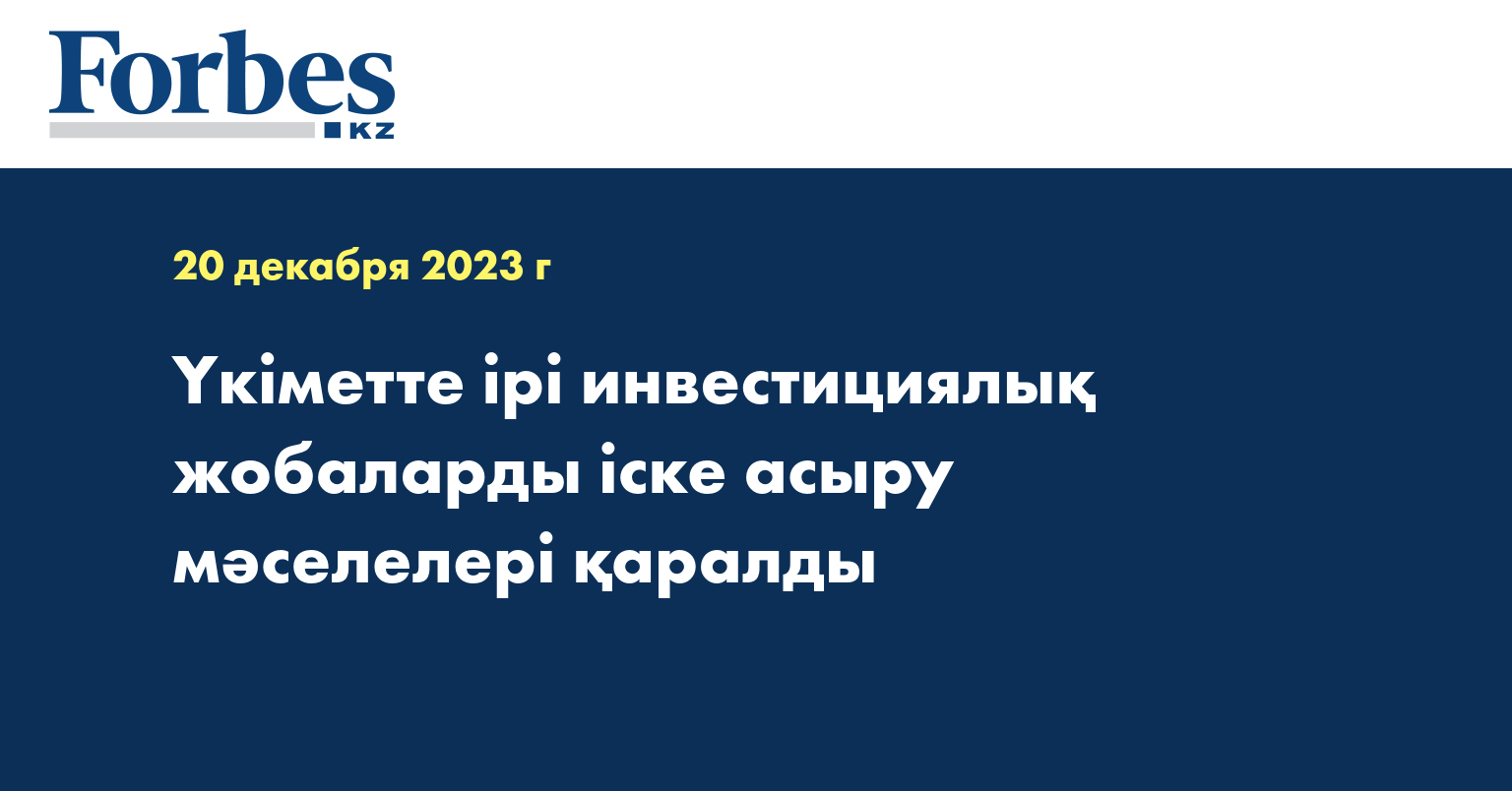 Оған қоса Инвестициялық штаб отырысында екі ірі инвестициялық жобаны іске асыру барысы қаралды.