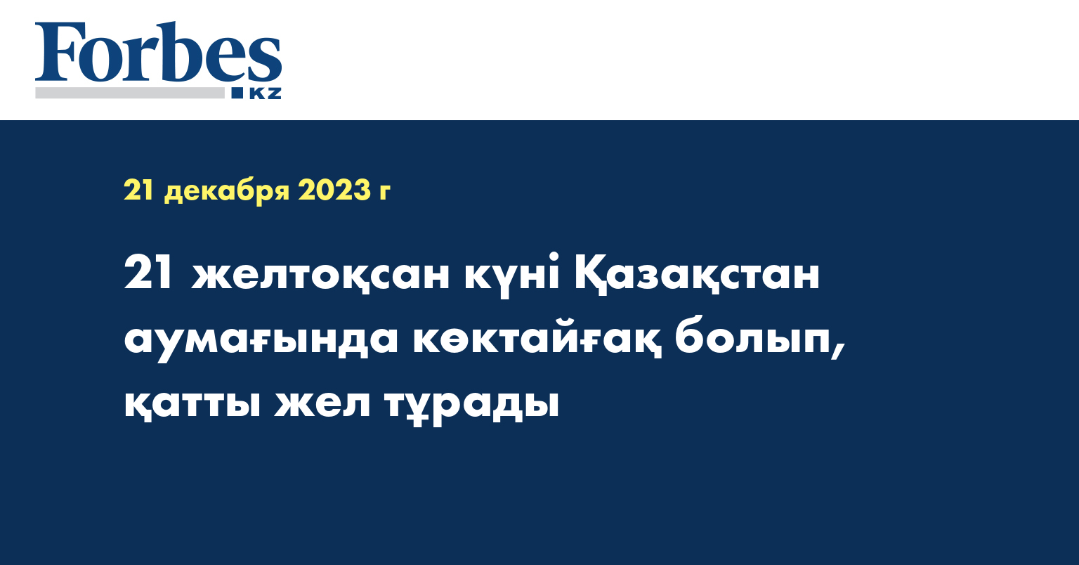 Қазгидромет ел аумағында 21 желтоқсанда болатын қауіпті метеорологиялық құбылыстарға болжам жасады.