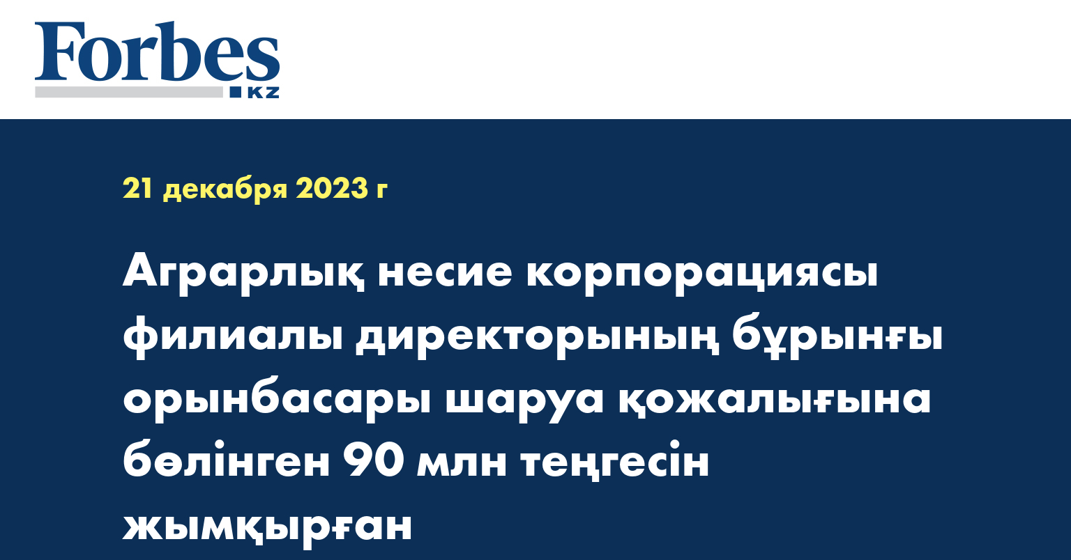 Шаруа қожалығының басшысы есеп айырысу шотына 90 млн теңге аударған, бірақ бұл қаражатты корпорацияның Ақтөбе филиалы директорының орынбасары жеке қажеттіліктеріне жұмсаған.