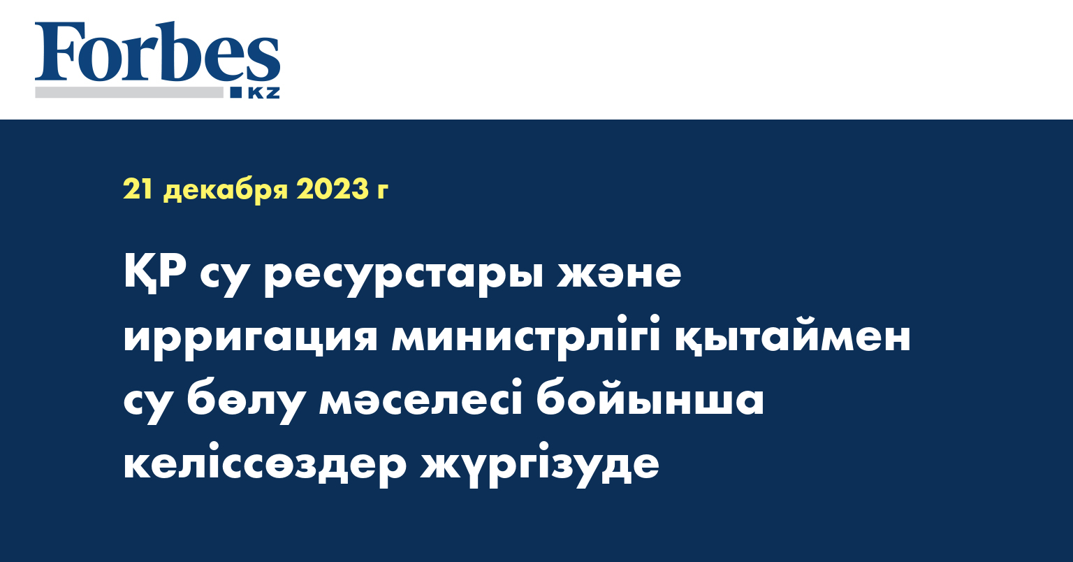 Су ресурстары және ирригация министрлігі Қытаймен 20-дан астам өзен бойынша келіссөз жүргізіп жатыр. Оның ішінде үш ірі трансшекаралық өзен: Ертіс, Іле және Емел бар.