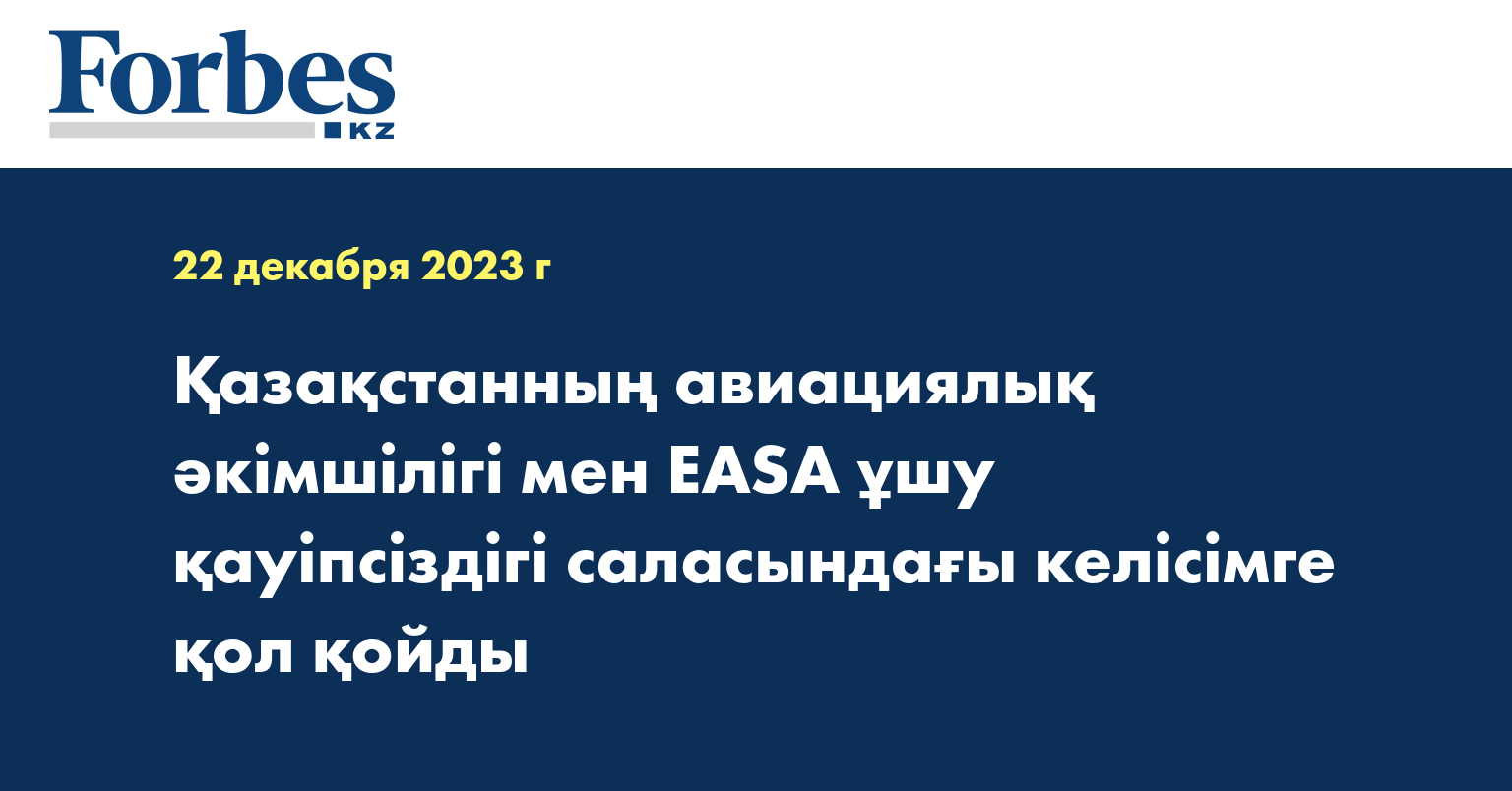 Көлік министрлігінің үйлестіруімен Еуропалық ұшу қауіпсіздігі агенттігі (EASA) және Қазақстанның авиациялық әкімшілігі қазақстандық әуе көлігі секторындағы қауіпсіздік стандарттарын арттыруға, реттеудің тиімділігін жақсартуға, оларды ЕО халықаралық стандарттары мен стандарттарына сәйкес келтіруге және осы мақсаттарға қол жеткізу үшін EASA табысты моделін пайдалануға мүмкіндік беретін келісімге қол қойды, деп хабарлайды Kazinform Азаматтық авиация комитетіне сілтеме жасап.