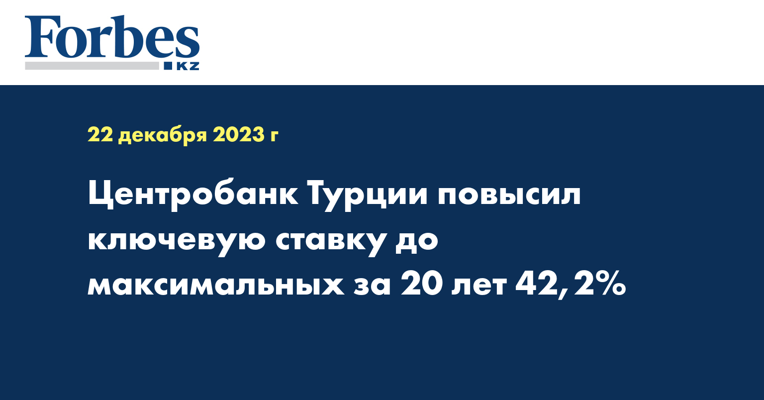 Центральный банк Турции повысил ключевую ставку c 40 до 42,5%, что стало седьмым ее повышением подряд с июня 2023 года. «Существующий уровень внутреннего спроса, устойчивость инфляции в сфере услуг и геополитические риски поддерживают инфляционное давление», – объяснил свое решение Комитет по денежно-кредитной политике регулятора, передает Lenta.ru.