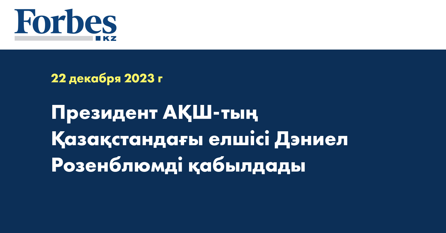 Мемлекет басшысы АҚШ-тың Қазақстандағы елшісі Дэниел Розенблюмді қабылдады, деп хабарлайды Ақорданың ресми сайты.