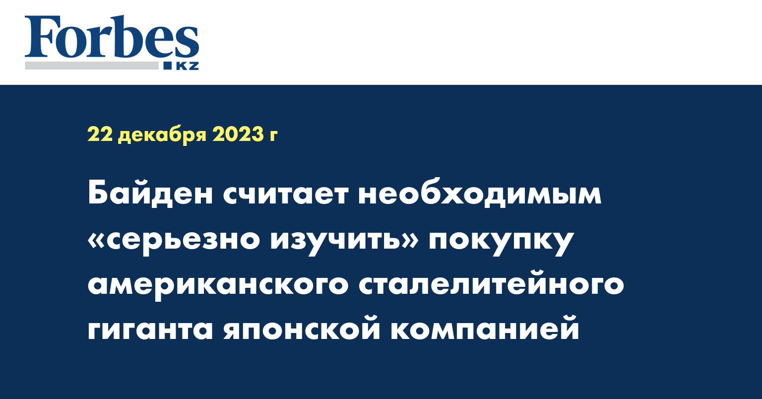 Президент США Джо Байден считает, что планируемое приобретение американской сталелитейной компании U.S. Steel японской компанией Nippon Steel требует «серьезного изучения», сообщил Белый дом, передает «Голос Америки».
