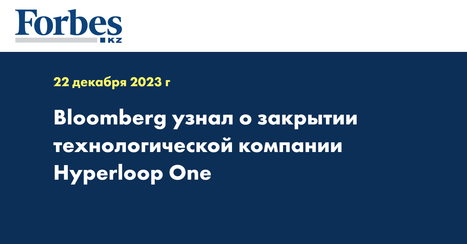 Американская транспортная компания Hyperloop One, разрабатывавшая сверхскоростной вакуумный поезд, близка к закрытию, сообщил Bloomberg со ссылкой на источники, знакомые с ситуацией, передает Forbes.ru. На данный момент компания уволила большую часть сотрудников и пытается продать оставшиеся активы, включая испытательный трек и оборудование, рассказал один из собеседников агентства. Кроме того, компания уже закрыла свой офис в Лос-Анджелесе. Оставшимся работникам, которым было поручено следить за продажей активов, сообщили, что их работа закончится 31 декабря, передает Bloomberg. В начале 2022 года в компании работало более 200 человек. Hyperloop One так и не удалось заключить контракт на строительство работающей системы, уточняет агентство.