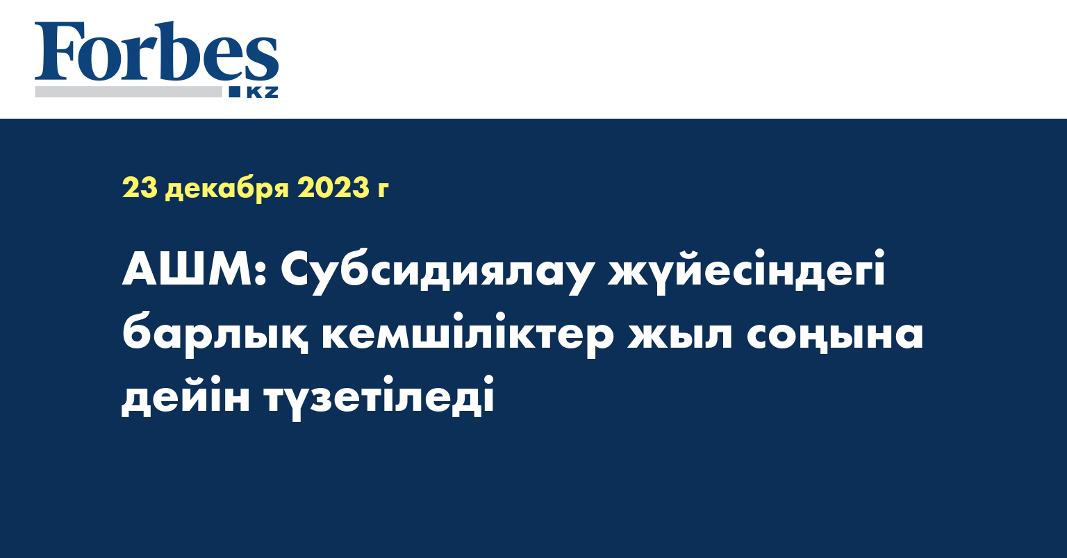 2023 жылы субсидиялауға шамамен 500 млрд теңге бөлінді: мал шаруашылығына – 115,9 млрд теңге; өсімдік шаруашылығы және қаржы құралдары бойынша – 318,1 млрд. Сондай-ақ егін және мал шаруашылығын қолдауға Үкімет резервінен тағы 60 млрд.